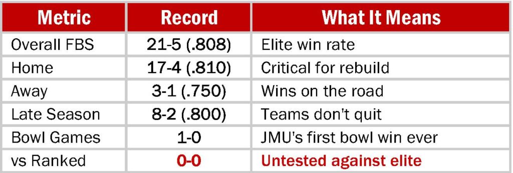 Four years of data showed a coach who consistently lost close games, couldn’t win bowls, and failed to elevate ODU’s national profile. The 2025 prediction was based on roster losses, a brutal early schedule, and a pattern of fourth-quarter collapses.